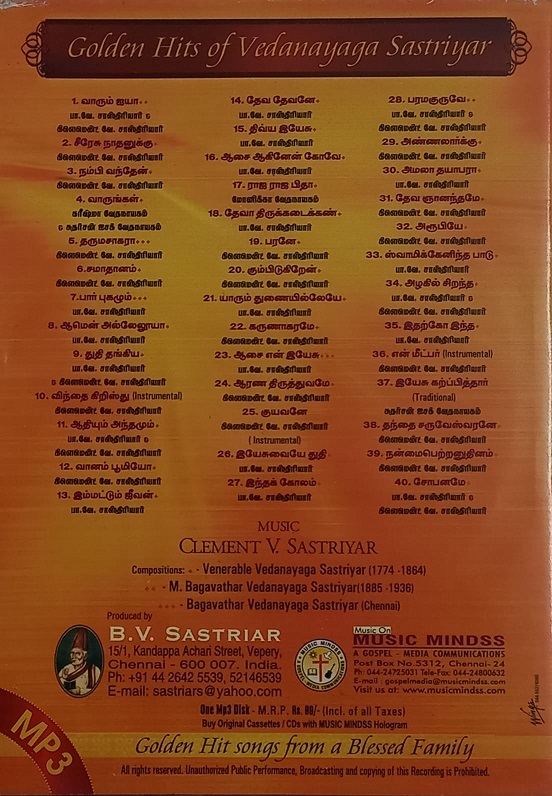 Golden Hits of VEDANAYAGA SASTRIYAR