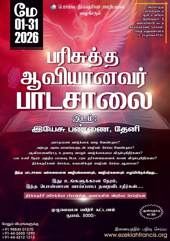 HOLY SPIRIT SCHOOL from 1st to 31st May 2026 @ Theeni, Details @ https://www.ezekiahfrancis.org/berachahpropheticministries/#/event-registration/confirmation/730
