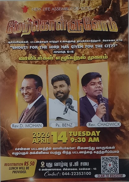 YOUTH REVIVAL CAMP on Tuesday, 14-April-2026 at 9:30 a.m. NLAG, Little Mount, Chennai