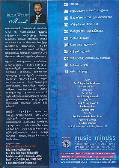 You can send us the song / album with YouTube links along with Holy Bible verse references by WhatsApp (+91-9841281426) OR SMS to 99622 81426 OR email cmedialending@gmail.com. You will be informed when the song/album you send is featured here.