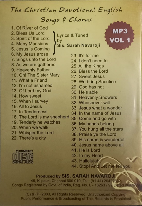 Friends, you can listen to “Bless Us LORD JESUS” English songs by Sis. Sarah Navaroji here.