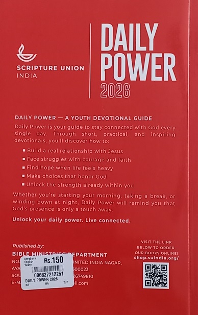 You can request this free book “Scripture Union Daily Power 2026” via SMS (99622-81426) or WhatsApp (+91-99622-81426) or email (cmedialending@gmail.com).