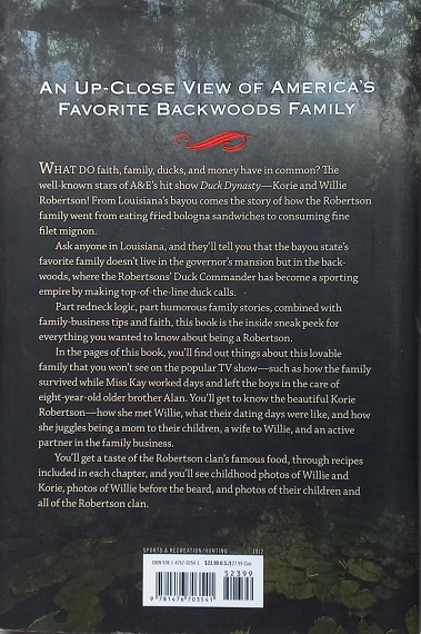 This book gives readers an up-close and personal, behind-the-scenes look at the family in the exploding A&E® show—Duck Dynasty®. This Louisiana bayou family operates Duck Commander, a booming family business that has made them millions. You’ll hear all about the Robertson clan from Willie and what it was like growing up in the Robertson household. You’ll sample some of Willie’s favorite family recipes from Phil, Kay, and even some of his own concoctions; and you’ll get to know the beautiful Robertson women. You’ll hear from Korie about the joys and hardships of raising a family, running a business, and wrangling the Robertson men while staying fashionable and beautiful inside and out. Discover more about the family dynamics between brothers Willie, Jase, Jep, and parents Phil and Kay. You’ll even meet a fourth brother who isn’t in the show.