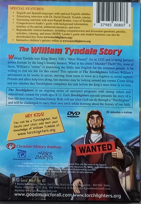 Original “The Torchlighters: The William Tyndale Story” DVD movie is available for free (with refundable deposit) lending within India. To receive, check out details @ https://cmedialending.in/example-to-take-a-video-made-in-india/.