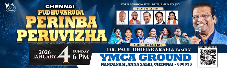 Chennai Revival All Night Prayer on Friday, 2-Jan-2026 from 9:30 p.m. to Saturday 3-Jan-2025 4:30 a.m. (Preparatory Prayer on 1-Jan-2025 from 7 p.m. to 9 p.m.)