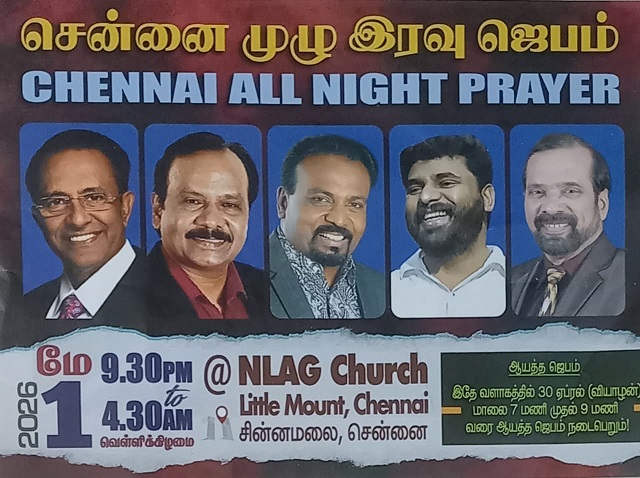YOUTH REVIVAL CAMP on Tuesday, 14-April-2026 at 9:30 a.m. NLAG, Little Mount, Chennai